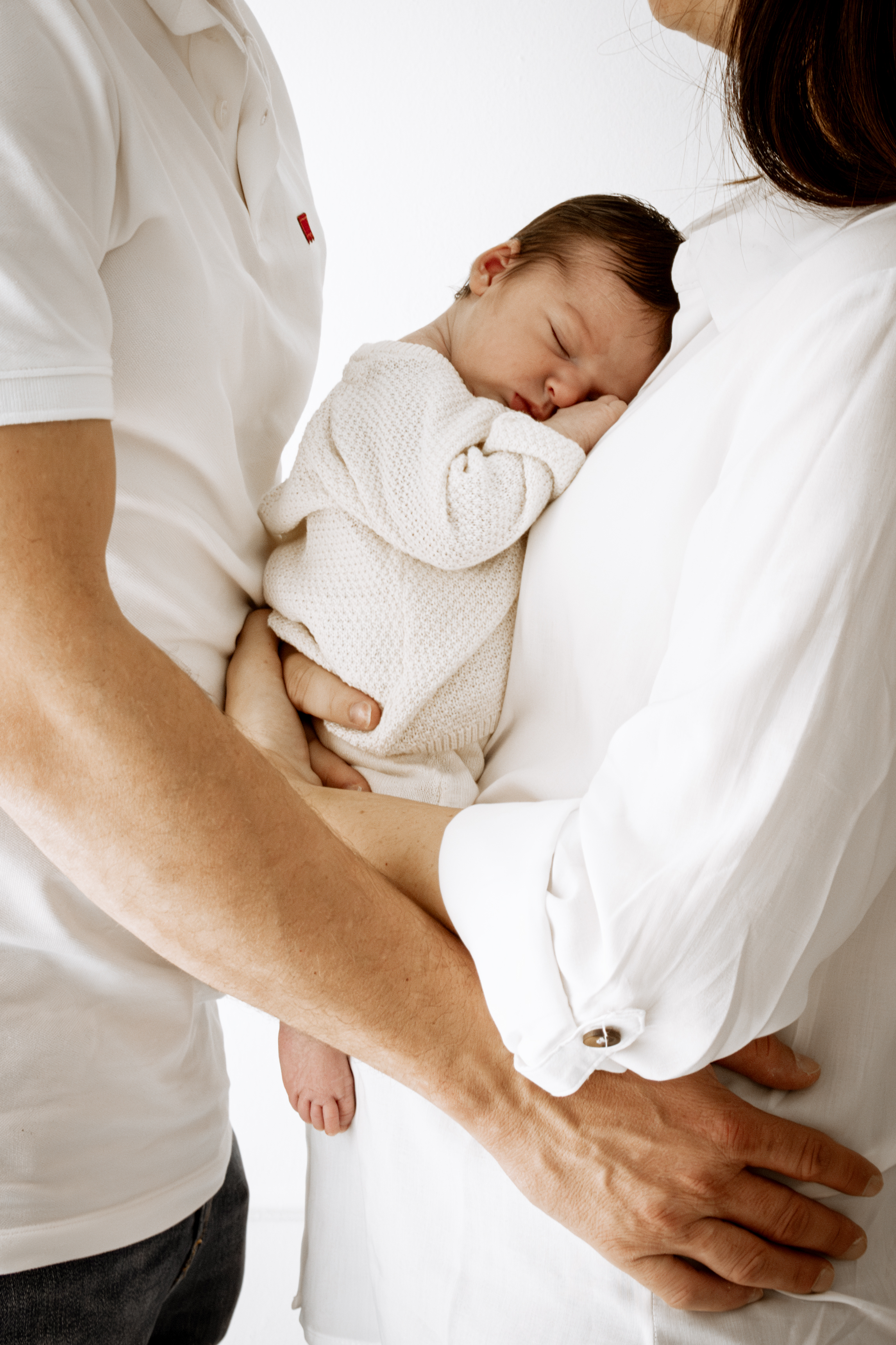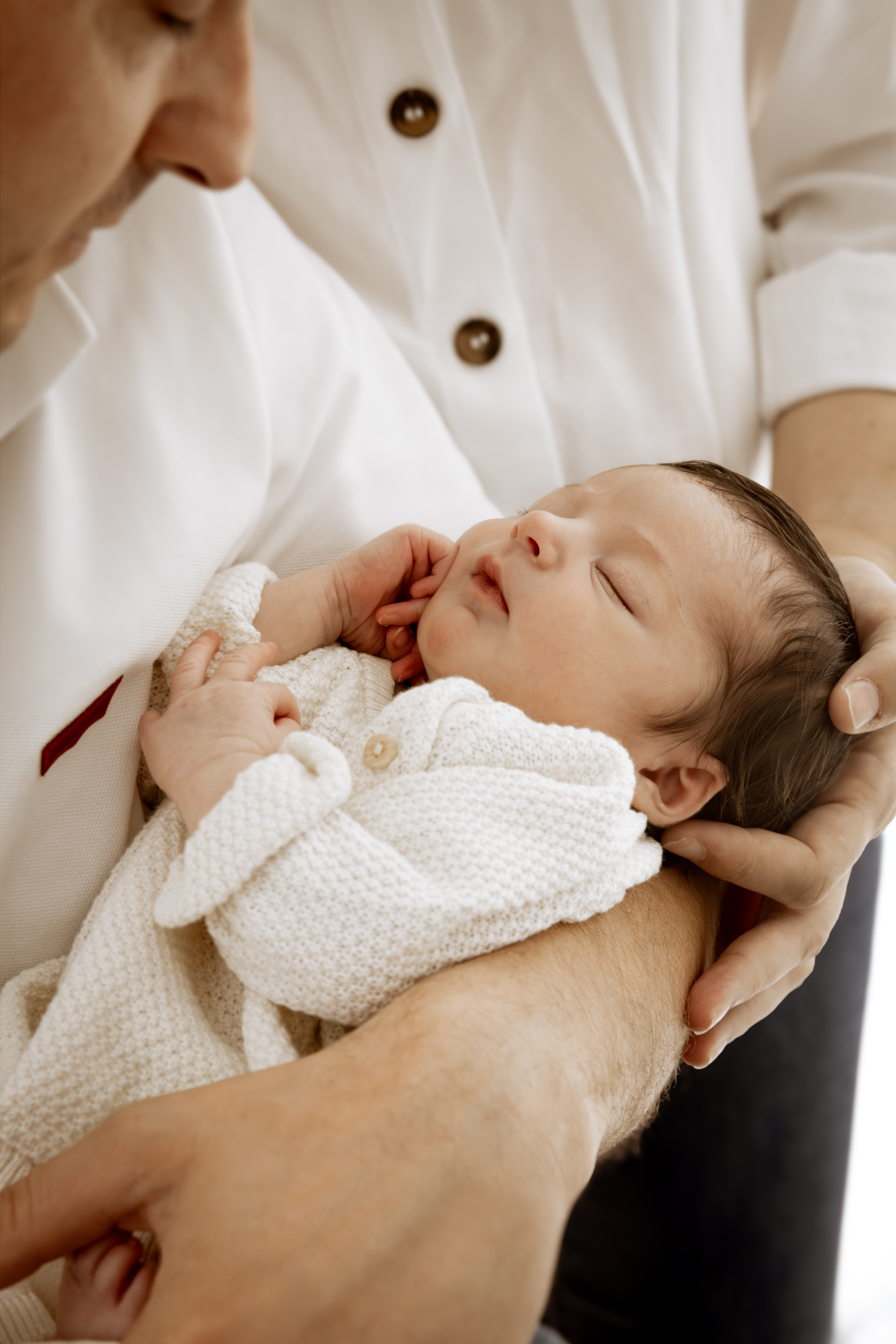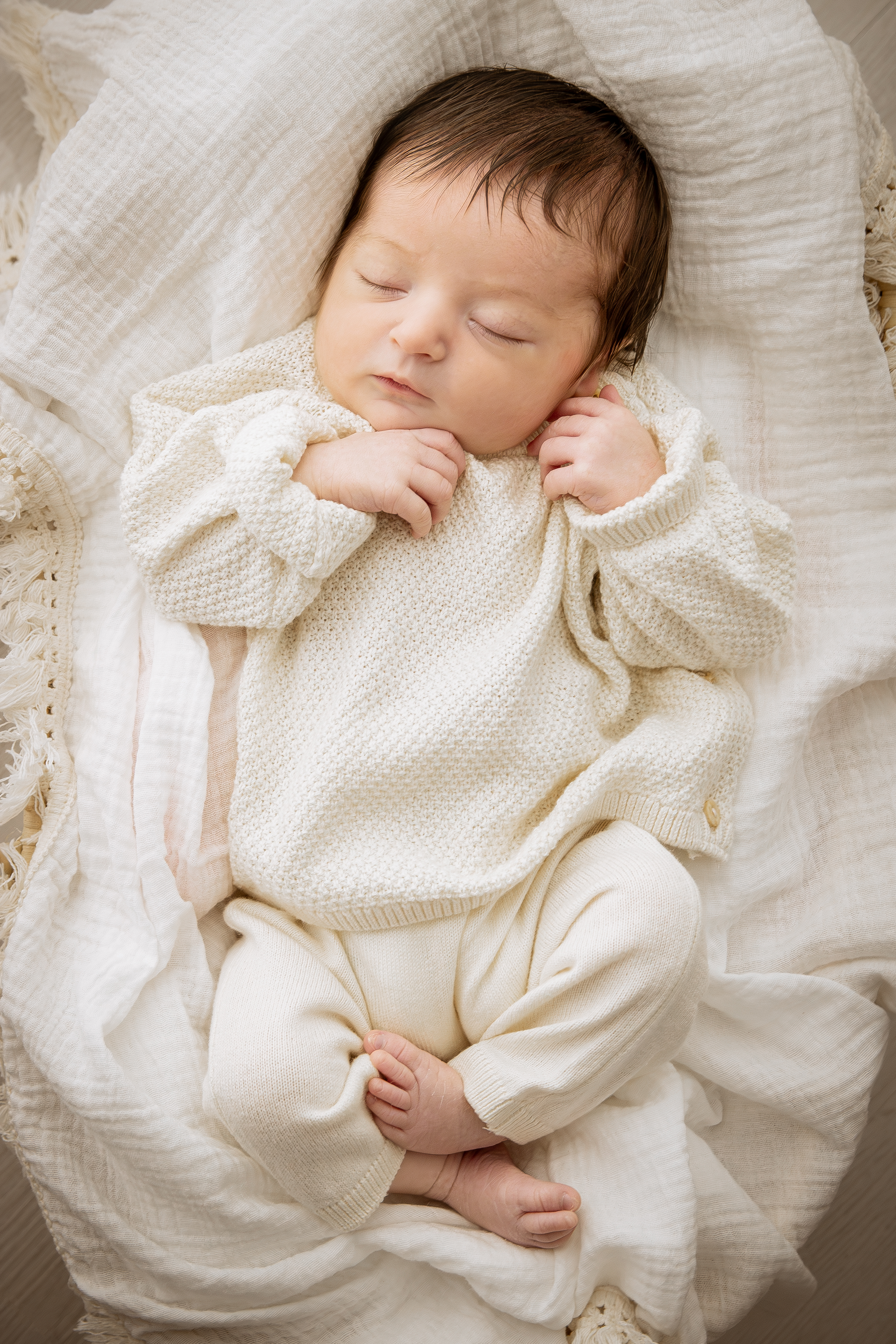 A M la esperaban con muchas ganas en su familia. La sesión newborn puede ser así, sencilla y atemporal, o más posada y tradicional, con envolturas y props.