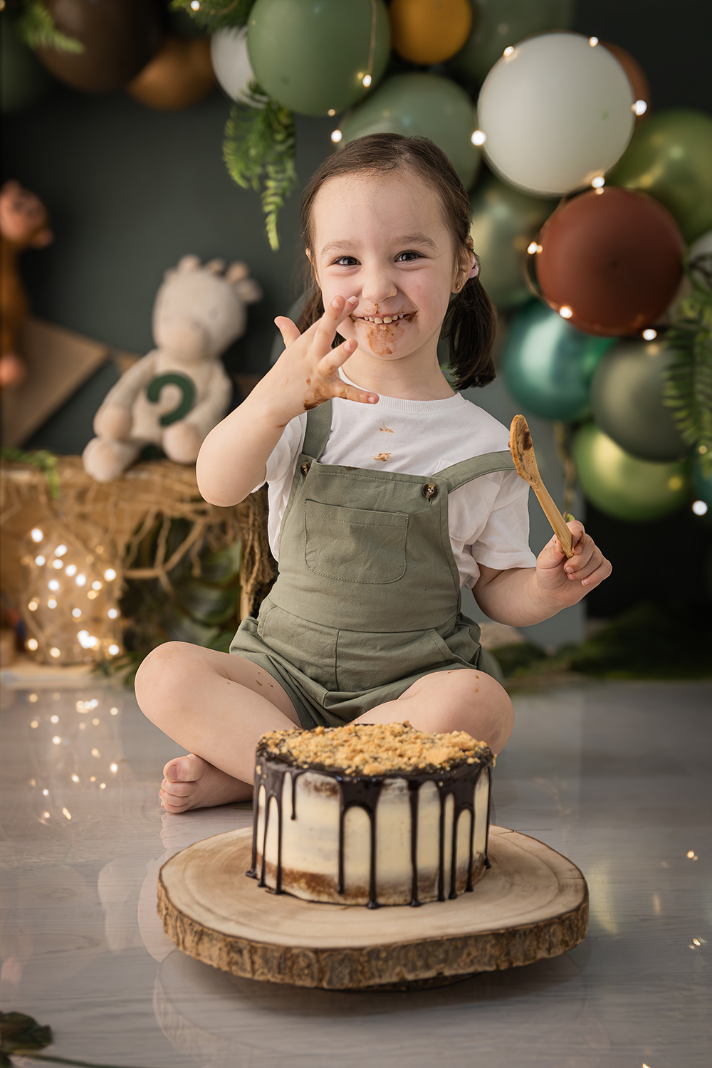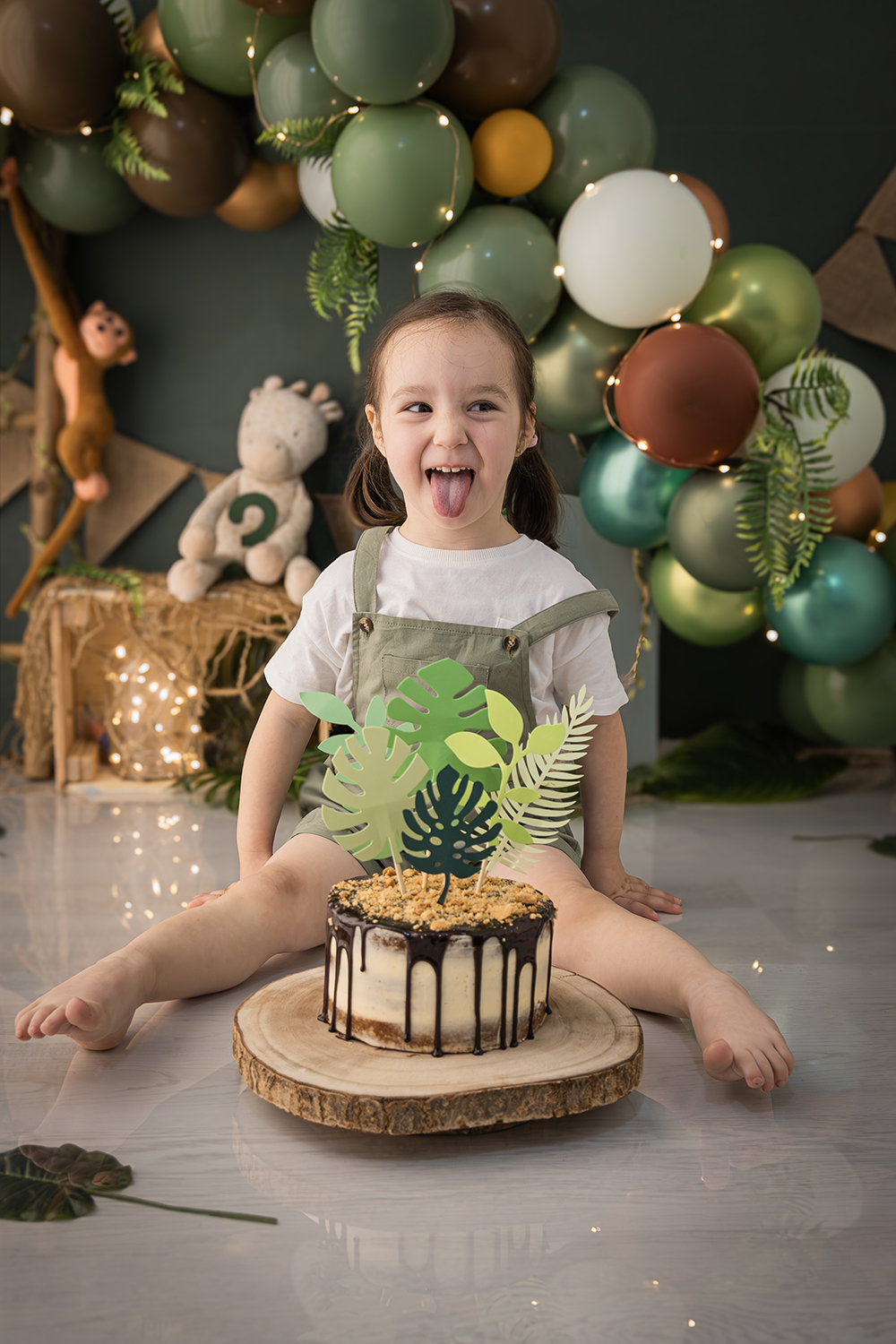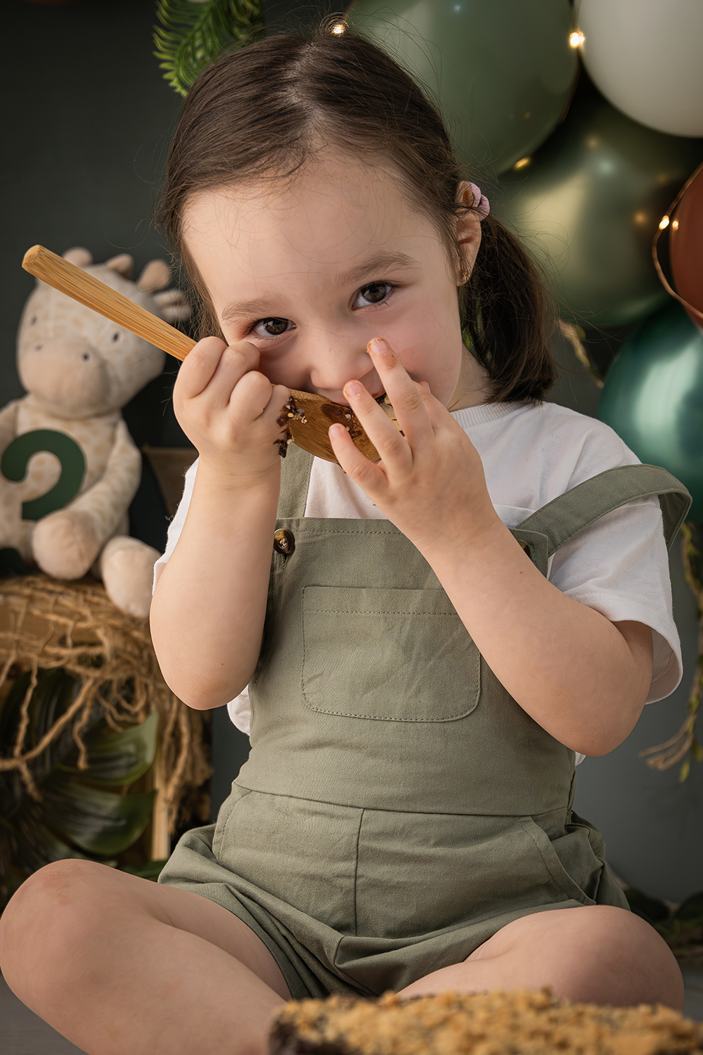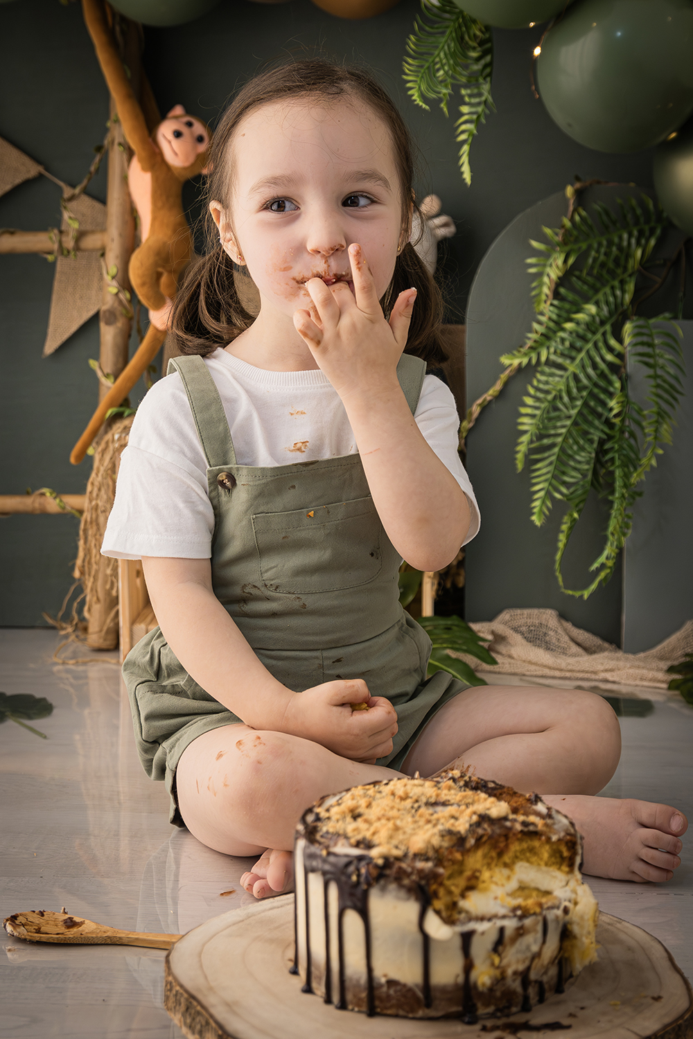 Vera cumplió tres años rodeada de los animales y los sonidos de la selva y con una tarta de chocolate y galleta para ella solita.
